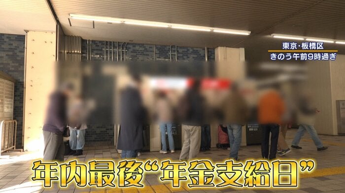 12月15日は、年内最後となる“年金の支給日”。駅に隣接するATMには行列ができていました。おろした年金をその場で小分けする人の姿も。