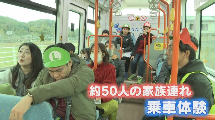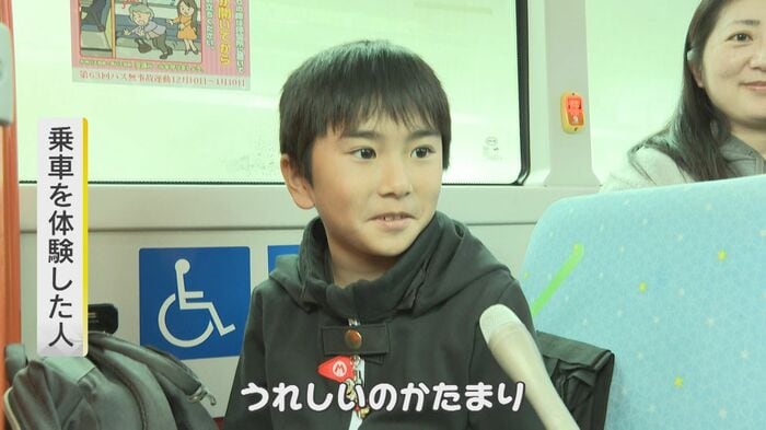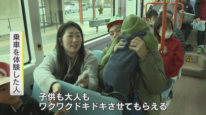 この日の特別なバスの車内では、子どもたちが施したラッピングも楽しむことができる。運行開始を翌日に控えた12月13日、県外からも家族連れが訪れ約50人が乗車を体験した。