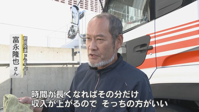 ドライバーの富永隆也さんも「僕らとしては運んでなんぼですよ、その分、時間が長くなれば、その分だけ実入りというか収入が上がるんで、そっちの方がいいですよね。僕は働いた方がいいです」と話す。