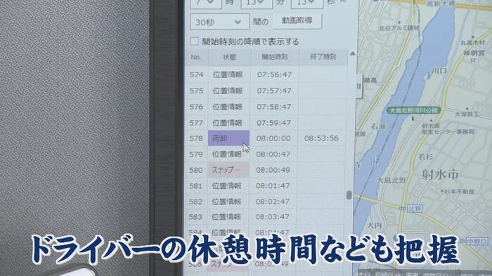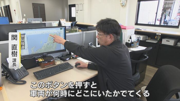 「このボタンを押すと、その車両が『何時にどこにいた』っていうのが、出てくる」とシステムを紹介するのは『朝日陸運』課長の関直樹さん。