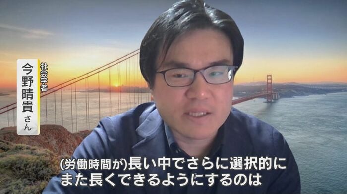 社会学者で『ブラック企業対策プロジェクト』の共同代表、今野晴貴さんは「労働時間が長いなかで、さらに選択的にまた長くできるようにするっていうのは、単純に普通に危険なことであるということ」と話す。現在の時間外・休日労働の上限は「過労死の危険性があるギリギリのライン」だとしてさらなる緩和に懸念を示す。