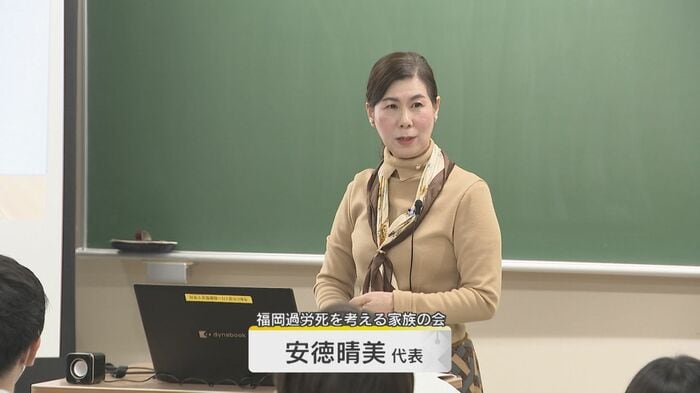 「社会の構造が変わったら、急に過労死が増えていきますよ。人の命を優先に考えない、災害が起こるかもしれない、そんなシステムに変わった途端に過労死って増えるんです」と看護学生に対して授業を行うのは『福岡過労死を考える家族の会』代表の安徳晴美さんだ。