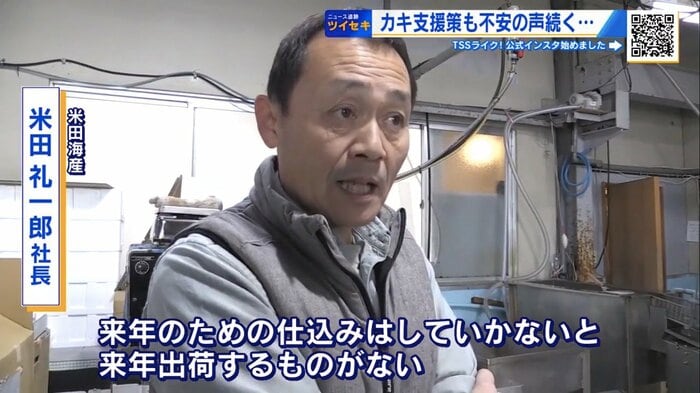 米田社長は「今年こういうことがあって、また来年もあったりすると、カキ業界自体がなくなるんじゃないか。それくらいひどい状況だと思います」と危機感を口にした。