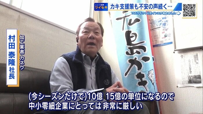 カキ養殖業者「米田海産」の米田礼一郎社長は売り上げの落ち込みについて、「前年比で、少なくとも1日あたり数十万円の減少」と明かす。