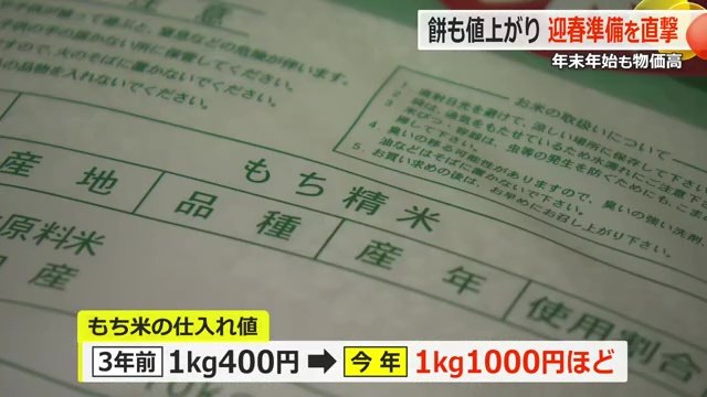 コメの価格高騰が続く中、お正月の定番である「餅」の値段にも大きな影響が出ている。原料のもち米の仕入れ値が大幅に上昇していて、餅店では価格の見直しを迫られている。