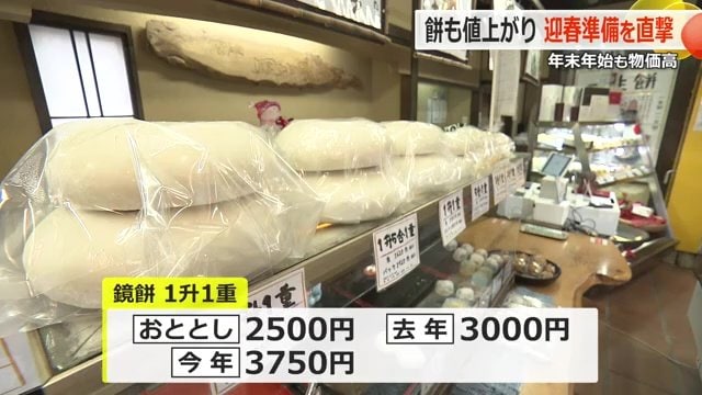 こうした原料費の高騰を受け「餅の田中屋」では鏡餅1升1重の販売価格を、2年前の2500円から、去年は3000円、そして今年は3750円へと年々値上げせざるを得ない状況となっている。