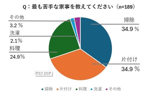 掃除と片付けが同率1位という結果に。「毎日掃除をしてもなんとなく汚れている気がして、キリがない」「ものの定位置がなかなか決まらず、部屋が雑然として片付かない」という意見が多数寄せられました。