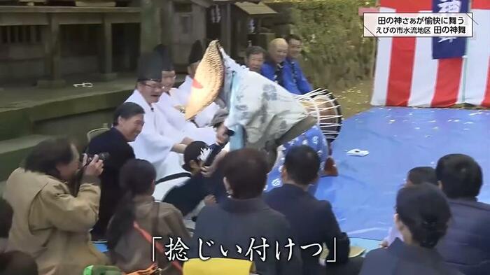 米どころ・宮崎県えびの市の田畑にたたずむ神様「田の神さぁ」が、五穀豊穣を願い愉快に舞う、伝統神楽「田の神舞」。約300年前から受け継がれるこの舞は、みんなが神様に「チャチ」を入れる、見た人が思わず笑顔になる舞だ。長年、地域を明るくしてきた大切な伝統芸能の継承に、近年、新たな活気が生まれている。