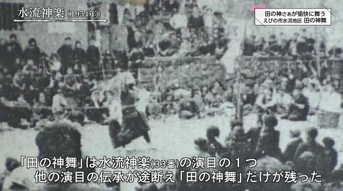 元来、水流神楽(1954年)は33番の演目があったが、戦後、他の演目の継承が難しくなり「田の神舞」だけが残ったという。
