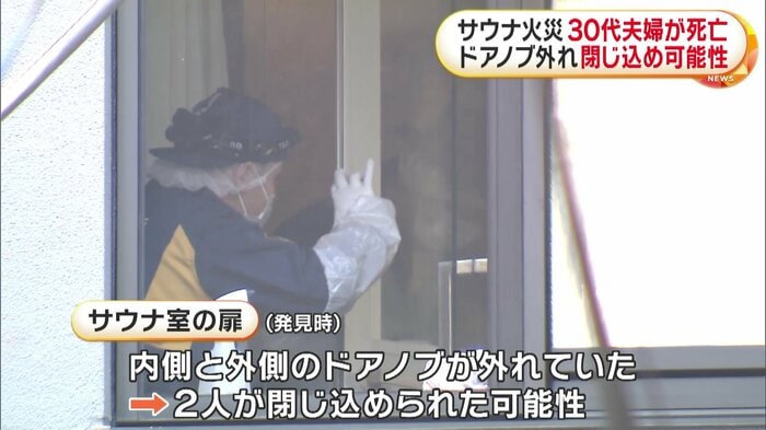 松田さん夫妻が発見された際、サウナ室に出入りする扉のドアノブは内側と外側の両方とも外れ床に落ちていたことが分かっていて、2人が扉を開けられず、サウナ室に閉じ込められた可能性もあるということだ。