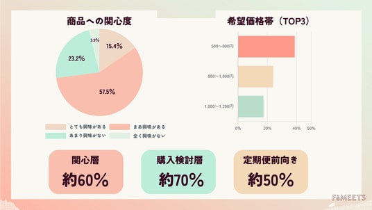 「約6割が商品に興味、価格帯は500~1,000円(200gあたり)が中心」