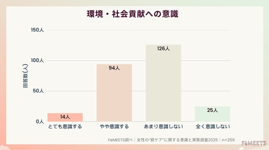 さらに、調査からは、自身の健康だけでなく、環境や社会課題への配慮も含めて商品を選びたいと考える女性が一定数存在することが確認され、健康価値と環境・社会貢献の両立に対する意識の広がりがうかがえます。