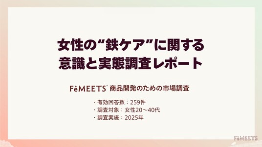 FeMEETS(運営:合同会社弐百円)は、こうした生活者の実態を把握し、無理なく続けられる鉄ケアのあり方を検討するため、本調査を実施しました。