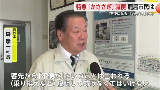 今回のダイヤ改正について、影響を受ける並行在来線沿線の鹿島市の声をきいた。
