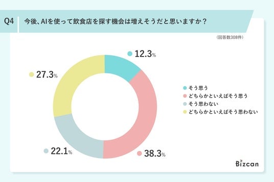 今後の飲食店探しにおけるAI利用の増加については意見が割れる結果に