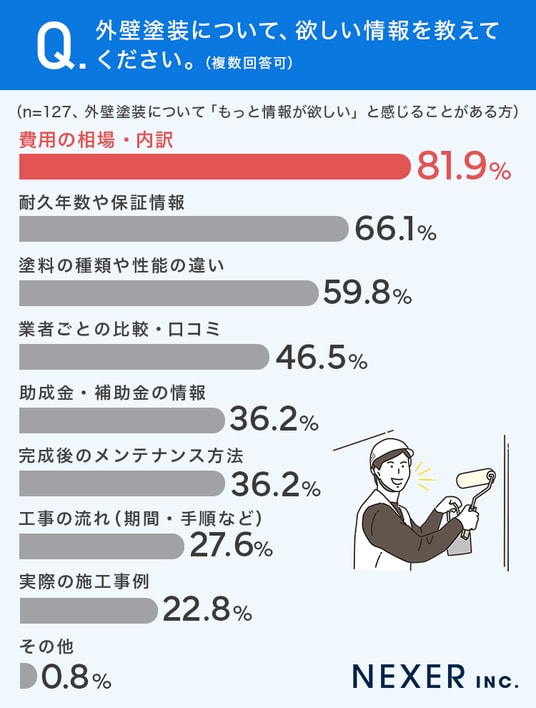 ■81.9%が、外壁塗装について「費用の相場・内訳」に関する情報が欲しいと回答