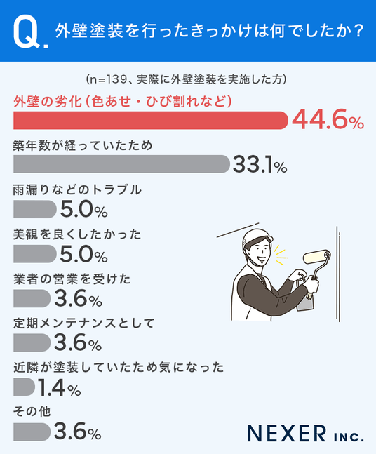 ■44.6%が「外壁の劣化」をきっかけに外壁塗装を実施