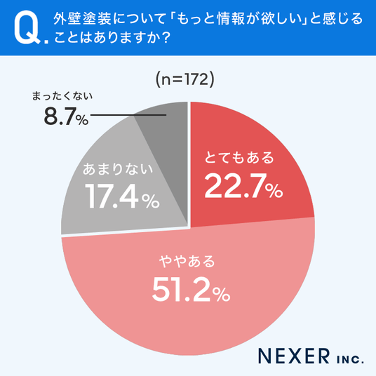 続いて、外壁塗装について「もっと情報が欲しい」と感じることがあるか聞いてみました。