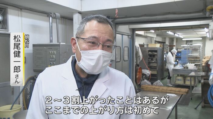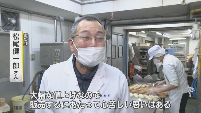 『蛸松月』の松尾さんは「4割ぐらいは上がる。餅は100%、材料がもち米だけなので、直結するので致し方ない。大幅な値上げなので、販売するにあたって心苦しい思いはある」と苦渋の選択だったことを口にする。
