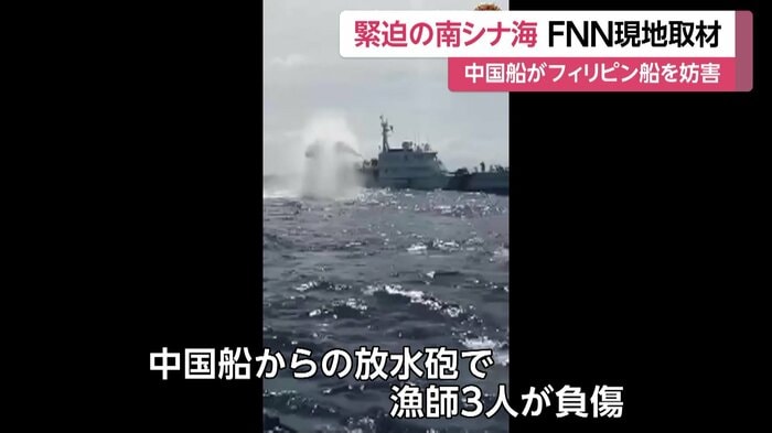 南シナ海の別のエリアでは実際、フィリピンの漁船が中国船からの放水砲を受け、漁師3人が負傷した。
