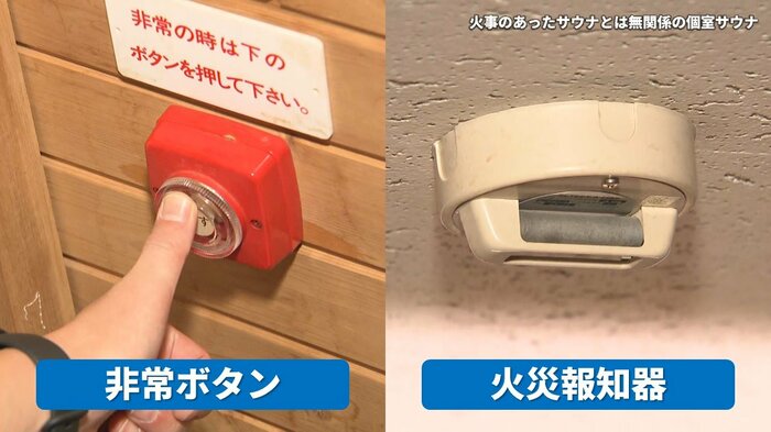 さらに、万が一の火災に備えてサウナ室内には全室火災報知器を設置。すぐ手が届く場所にある非常ボタンを押すと、事務所で音が鳴り分かるようになっているといいます。