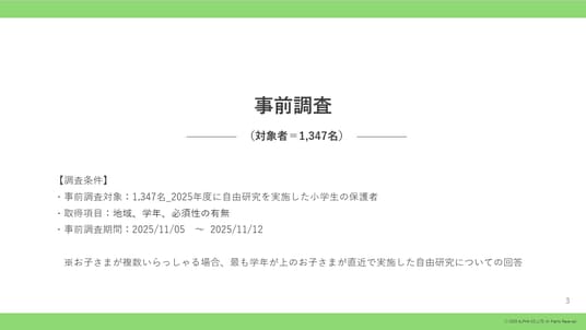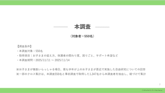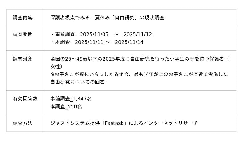 全国25~49歳以下の2025年度夏に自由研究を行った小学生の子を持つ保護者(女性)_事前調査:1,347名、本調査:550名を対象にWebアンケートを実施