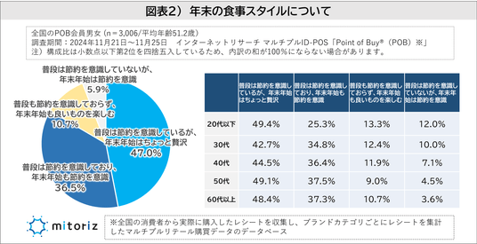 年末年始くらいは“ちょっと贅沢に食事したい”が47.0%で多数派も、36.5%は年末年始でも節約を意識