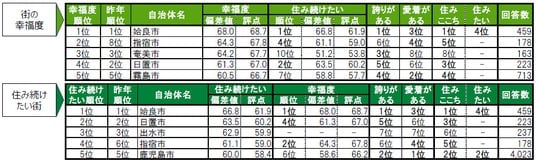 街の幸福度1位は3年連続で姶良市。2位指宿市。3位は2年連続で奄美市。