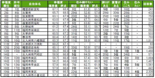■街の幸福度(自治体)トップは、2年連続で糟屋郡新宮町