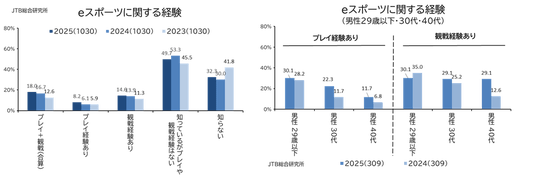 ●eスポーツの認知拡大は頭打ちも、実際のプレイ・観戦経験者は増加傾向
