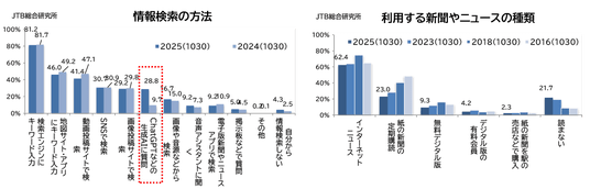 本調査はスマートフォンの利用実態や人びとの意識を継続的に調べることで、今後の生活や旅行行動に関する変化の兆しをとらえようとするものです。昨年の調査結果では、検索エンジンだけでなく、地図アプリや動画が情報検索の方法として重要度を増しているなど、変化の兆しをとらえてきました。当社は、今後も生活者のライフスタイルや価値観が消費行動や旅行に与える影響に関する調査研究を継続的に行ってまいります。