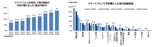 (株)JTB総合研究所は、「スマートフォンの利用と旅行消費に関する調査(2025)」を実施しました。本調査は2013年から調査を開始し、本調査で10回目となります。