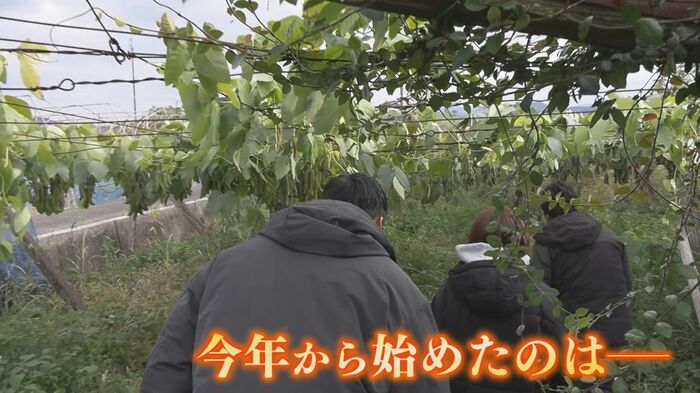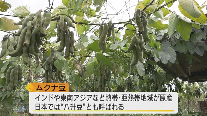 さらに朝倉市を盛り上げるため2人が始めたのが、枝豆の何十倍もあるようなムクナ豆の栽培。インドや東南アジアなど熱帯、亜熱帯地域が原産で、国内では八升豆とも呼ばれている。