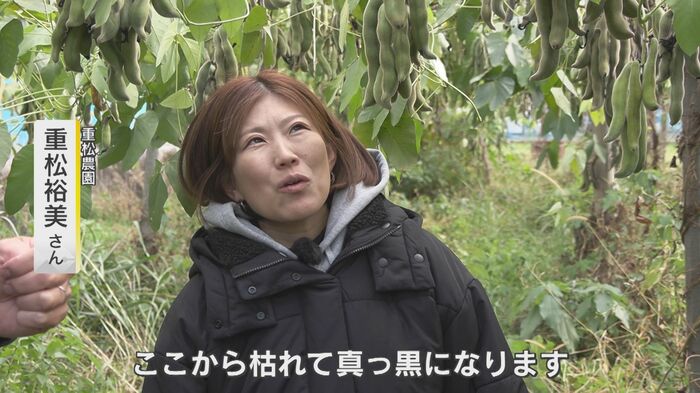 「もうそろそろ収穫時期なんですけど、まだまだ水分が含まれているので、これから枯れて真っ黒の状態になります」と話す裕美さん。大きく育った実を乾燥させて収穫し、加工品の開発にも乗り出すつもりなのだ。
