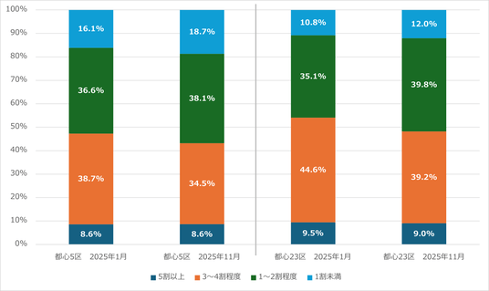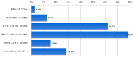また、フルリノベーション物件の賃料水準については、「新築物件の80~95%程度が妥当」と考える仲介担当者が多く、内装・設備の更新内容や商品企画次第で、十分に賃料競争力を確保できることが示唆される結果となりました。