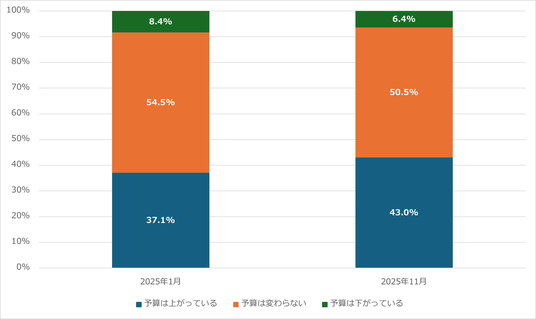昨今の家賃相場上昇を受け、2024年と比較して来店客の「賃料予算が上がっている」と感じる仲介担当者は4割超となり、前回調査からは5.9ポイント上昇しました。