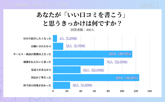 「あなたが『いい口コミを書こう』と思うきっかけは何ですか?」という質問では、以下の結果となりました。