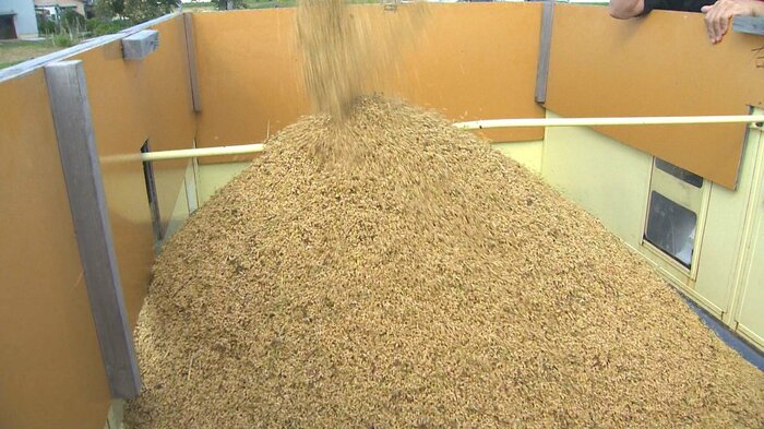 ベジ・アビオによると、作付面積57アールから、1650kgのコメが収穫されたという。