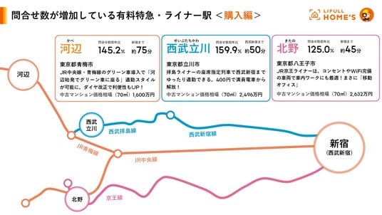 特急列車や新幹線が停まる駅においては、LIFULL HOME'Sの賃貸物件や購入物件への問合せ数が昨年よりも増加しています。「座って快適に移動」ができ、かつ「広さ」「自然の豊かさ」「割安さ」といったメリットを享受できる「こちくら郊外」を選択することはQOL(生活の質)と経済合理性を両立したい人にとっての主要な選択肢の一つになるでしょう。