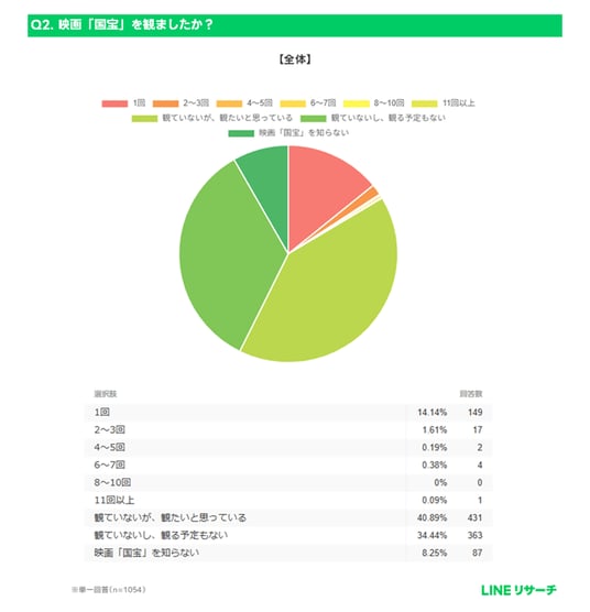 LINEリサーチ、全国の15~69歳の男女を対象に、映画「国宝」に関する調査を実施