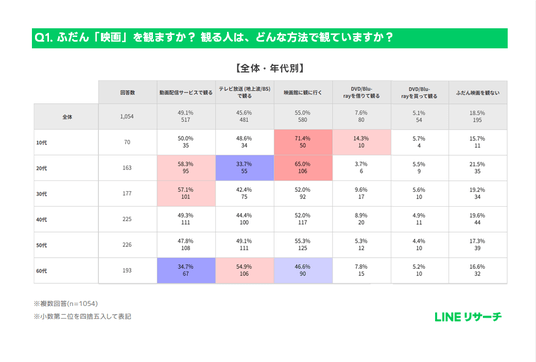 「LINEリサーチ」では、全国の15~69歳の男女を対象に、映画を観る方法や2025年6月に公開された話題の映画「国宝」に関する調査をしましたので、結果をお知らせします。