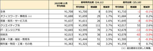 ※2025年10月より職種区分を一部変更。新設・名称変更等の見直しを行ないましたが、時系列比較の継続性は確保しています。