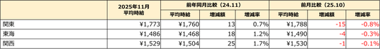 11月度のエリア別平均時給は、全エリアで前年同月比プラス。