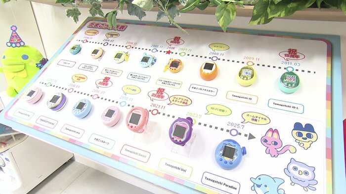 「たまごっち」は今も進化を続けています。これまでに38種類販売され、バンダイの社内には、その歴史を紹介するコーナーもあります。