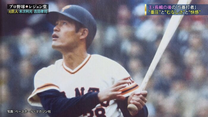 勝負強いバッティングで、ONの後ろで5番打者を務めてらっしゃいました、末次利光さん(83)でございます。