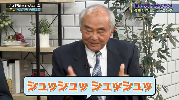 ビジターなんかで試合に行くじゃないですか。その時、行った時に、最初に長嶋さんが「おいヨシ、ちょっと走ろうか」と。で、「つきあえ」と言われてね、走ったんですよ。甲子園球場でね、ポールからポールを走ったんですよ。