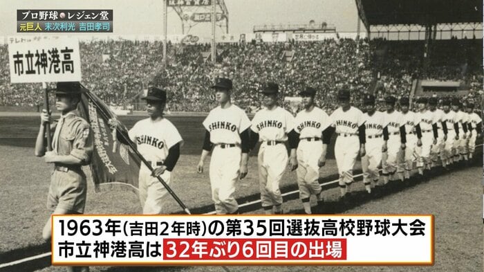 [1963年(吉田2年時)の第35回選抜高校野球大会で市立神港高は32年ぶり6回目の出場。準決勝で池永正明投手擁する下関商に1-4で敗退]