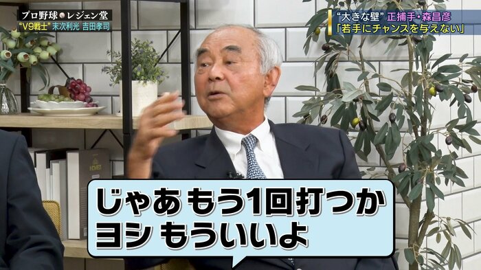 吉田さんは、1軍に定着するわけでございますけど、吉田さんが入団したころは巨人のキャッチャーといいますと、森さんがいらっしゃいました。大きな壁だったんでしょうね。森さんは。