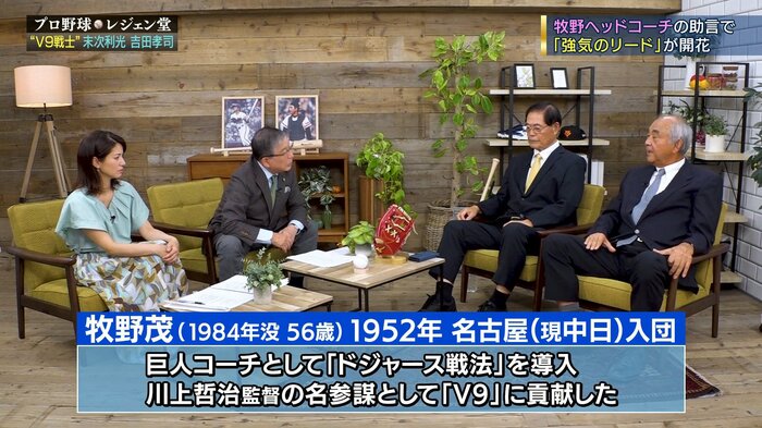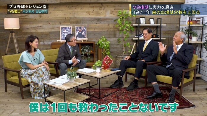 読売ジャイアンツの「V9戦士」2人がレジェン堂に。「史上最強の5番打者」末次利光氏と「強気のリード」で巨人投手陣を支えた吉田孝司氏。長嶋茂雄氏・王貞治氏らの知られざるエピソード、末次氏の伝説の逆転満塁サヨナラホームラン、“大きな壁”森昌彦氏との吉田氏のレギュラー争いなど徳光和夫が切り込んだ。