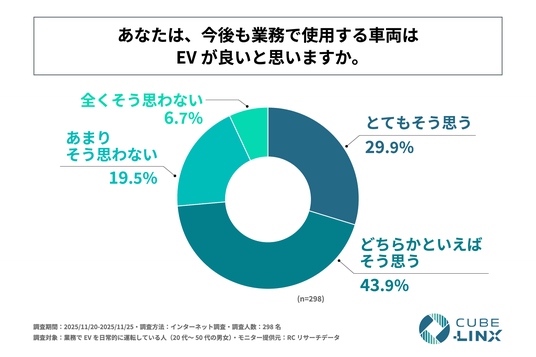 株式会社CUBE-LINXが「業務でEVを運転する人のEV利用実態と意識に関する調査」を実施!